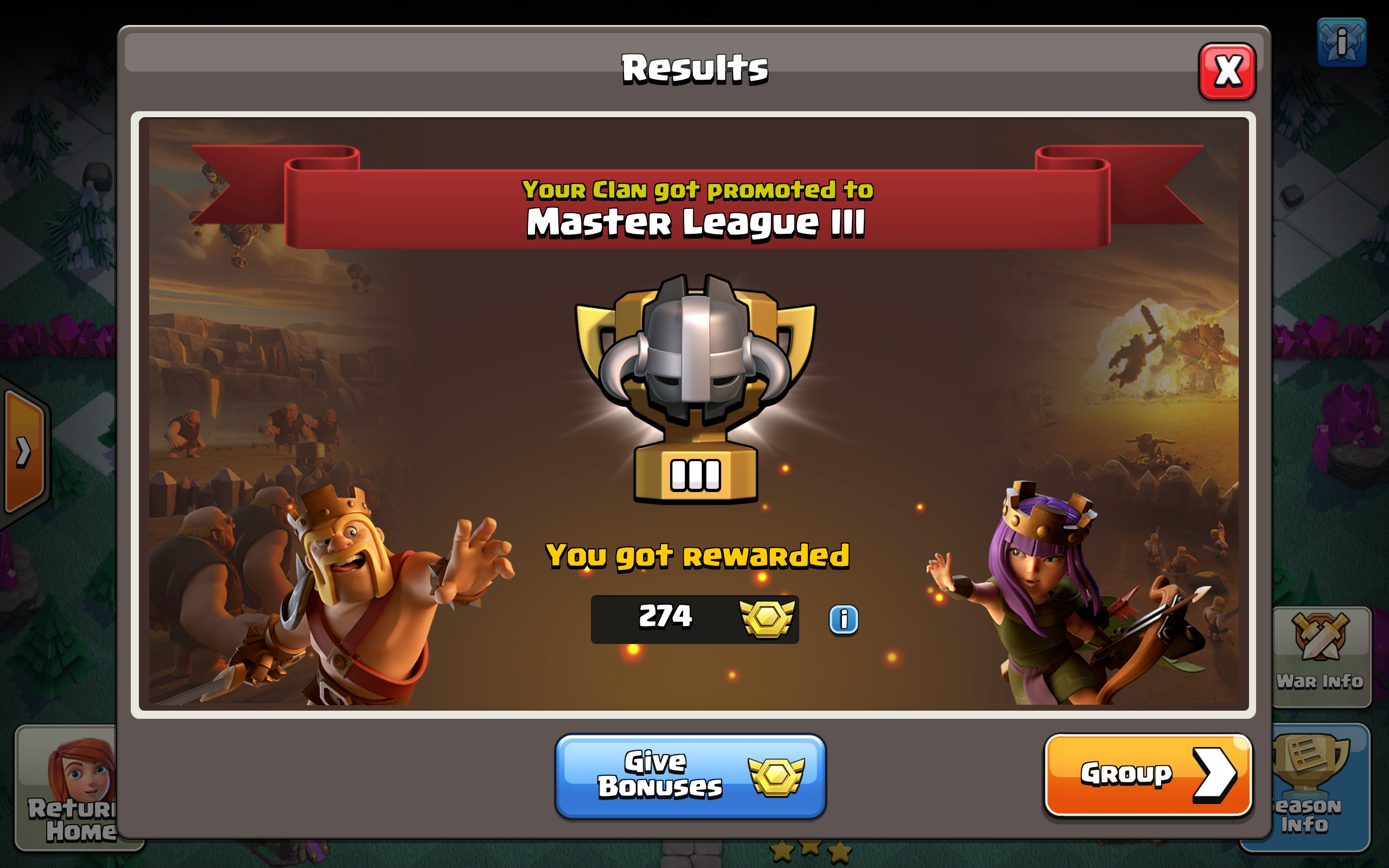 It’s been a long haul to get promoted to Master League in CWL but we finally got there. Over a year of CWL including four second place finishes has been quite a journey. Last month we even won all seven wars but still didn’t get top spot. So this a great achievement by the clan. Well done everyone who played !